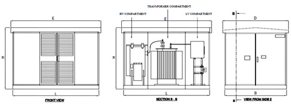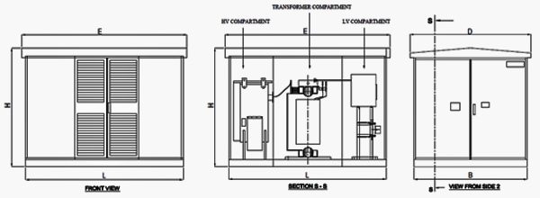 | HV COMPARTMENT | TRANSFORMER COMPARTMENT | LV COMPARTMENT |