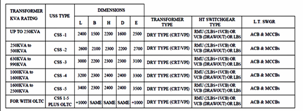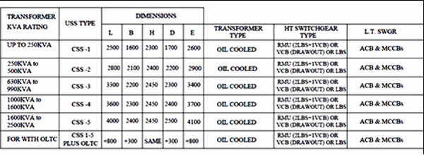 | LOAD BREAK SWITCH(LBS) OR RING MAIN UNIT (RMU) OR VACUUM CIRCUIT BREAKER (VCB) | OIL FILLED TRANSFORMER OR DRY TYPE (VPI/CAST RESIN) TRANSFORMER | ACB / MCCB WITH BUILT IN OVER CURRENT, SHORT CIRCUIT AND EARTH FAULT PROTECTION |